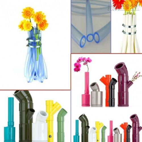 Với loại nhựa dẻo, bạn hãy gập đôi chiếc ống rồi dùng dây thép quấn chụm các miệng vòi. Nếu bạn dùng ống nhựa cứng, hãy bịt lấy đấy ống và đổ nước vào, cắm hoa, vậy là xong.