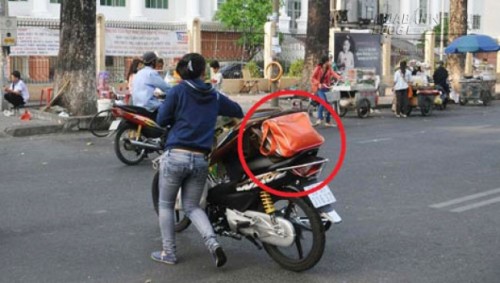 Ba lô, túi xách nếu bắt buộc phải để bên ngoài thì nên mắc quai cố định ở móc khóa. Đối với bạn nào ngồi phía sau được người khác chở thì phải ôm chặt chiếc túi của mình ở giữa, cũng không nên đeo ở bên hông.