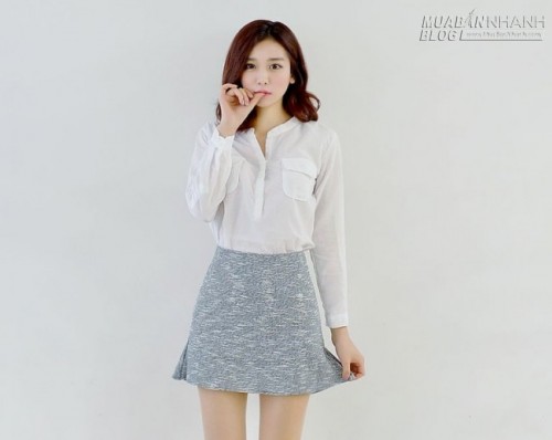 1. Chân váy chữ A + áo sơ mi