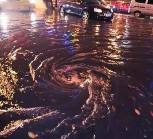 Khi trời đổ mưa, nếu nhìn thấy những vũng xoáy trên đường phố như hình ảnh dưới đây, người đi đường cần phải thận trọng.