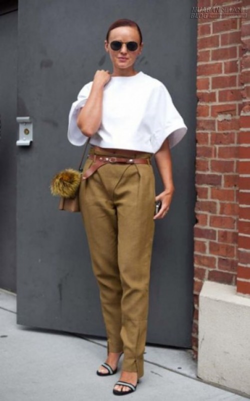 Bạn cũng nên nói không với kiểu quần cạp trễ. Thay vì đó, hãy chọn quần cạp cao để hướng sự chú ý vào phần chân. Giữ hình ảnh thật đơn giản với một chiếc áo sơ vin và một đôi xăng đan hoặc giày cao gót.