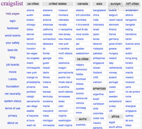 Craigslist là một trong những website rao vặt nổi tiếng nhất trên thế giới, nơi bạn có thể tìm được gần như mọi thứ, dù là một công việc, một căn hộ, một cô bạn gái, hay một trò giải trí. Nhưng điều đặc biệt của trang web này nằm ở chỗ nó là một cái gara để người ta đăng bán đủ thứ thượng vàng hạ cám mà lại hoàn toàn miễn phí. Từ khi ra đời tới nay, giao diện của trang web gần như không thay đổi, và người ta yêu thích nó chính vì sự đơn giản có phần hơi xấu xí của giao diện đó.