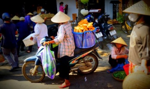 Chợ trong phố cổ lúc nào cũng tấp nập người mua kẻ bán từ cửa hàng nhỏ tới những gánh hàng rong, khách du lịch tò mò len lỏi đi giữa làn xe nườm nượp. Nếu dậy sớm, du khách có thể đi chợ buổi sáng khi những tiểu thương bày bán hàng hóa bên đường. Ai ai cũng đội nón khiến Audrey cảm thấy thích thú với khung cảnh chợ sớm.