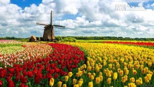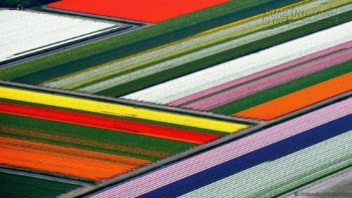 Những cánh đồng hoa tulip được trồng thành những cánh đồng đa sắc màu như những dải lụa mềm mại rơi xuống mặt đất. Hoa tulip được nhập khẩu vào Hà Lan vào thế kỷ 16 và hiện nay, có hơn 3 tỷ bông hoa tulip được trồng.