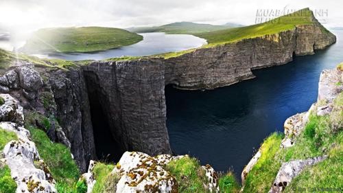 Hồ Leitisvatn hay còn gọi là Sørvágsvatn là hồ lớn nhất của quần đảo Faroe, một nhóm đảo trong vùng biển Na Uy, ở giữa Iceland, Na Uy và Scotland. Điều kỳ lạ là hồ nước này nằm chênh vênh cao hơn so với mặt nước biển. Thoạt nhìn, bạn sẽ ngỡ hồ Leitisvatn do các vị thần tạo nên nhưng thực chất nó là sản phẩm của mẹ thiên nhiên. Một vách đá dựng đứng chắn phía trước và do góc chụp khiến bạn tưởng vùng hồ này nằm rất cao so với mực nước biển. Tuy vậy, sự thực là hồ chỉ cao hơn mực nước biển 30m.