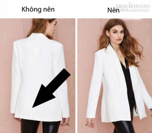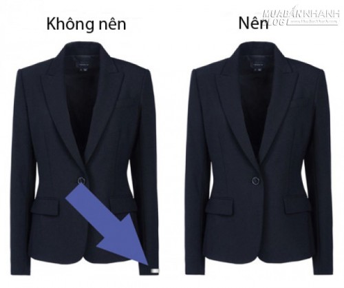Phần may dính hai vạt áo thân sau của áo blazer không phải là một chi tiết của thiết kế mà có tác dụng giữ nếp, phom dáng của áo trong quá trình vận chuyển xa xôi trong thời gian dài. Vì thế khi mua blazer về, bạn nên dùng kéo cắt phần máy đính này.