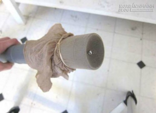 Khi bạn hút bụi dưới gầm các đồ đạc hoặc ở các khu vực mà bạn không nhìn thấy rõ, hãy nhớ đến những chiếc quần tất đã bỏ đi. Kéo căng vải và bọc đầu hút lại, như thế, máy vẫn hút được bụi bẩn mà không vô tình hút phải những phần đồ đạc mà bạn không mong muốn.