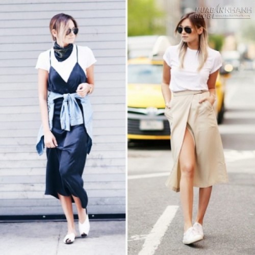 Nếu đủ can đảm, các cô gái có thể học hỏi cách kết hợp những món đồ vốn thường không đi chung với nhau để tạo nên một set đồ không theo quy tắc nào, vừa quen vừa lạ. Mọi người đều biết rằng áo thun và váy xẻ là set đồ căn bản, nhưng ai dám nói rằng áo thun và váy hai dây đi với nhau không phù hợp?