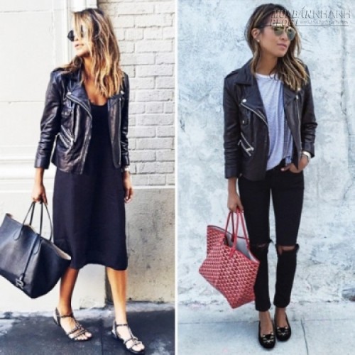 Không món đồ nào hoàn toàn nữ tính hay nam tính. Quan trọng là cách phối và phụ kiện đi kèm có thể giúp các cô gái trông yểu điệu thục nữ ngày hôm trước và khoẻ khoắn ngày hôm sau chỉ với cùng một chiếc áo khoác da bóng.