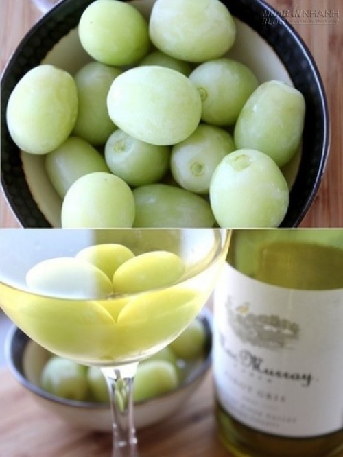 Nếu dùng đá để làm lạnh thì sẽ dễ làm mất đi mùi vị của rượu vì khi đá tan ra thì bạn biết rồi đấy. Để đối phó với việc này cũng cực kì đơn giản. Mọi người bỏ mấy quả nho vào trong ngăn đá, đôi khi rượu bị “nóng” bởi nhiệt độ ngày hè thì bỏ vài quả vào trong ly, không làm ảnh hưởng đến rượu mà còn có thể thưởng thức luôn vị ngọt của quả nho.