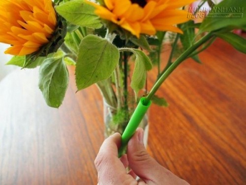 3. Luồn thân hoa vào 1 đoạn ống hút dài sẽ giúp cây đứng vững hơn khi cắm.