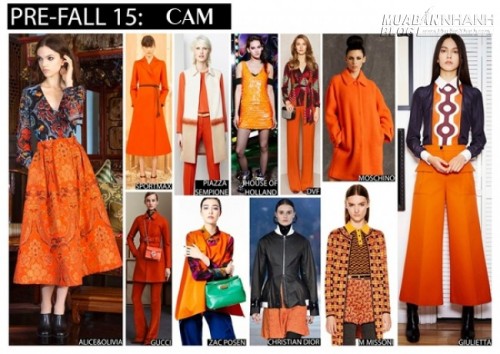 Gam cam không chỉ thịnh hành trong mùa thời trang Xuân hè vừa qua mà còn tấn công các bộ sưu tập Pre-Fall. Các chuyên gia nhận xét, màu cam không hề dễ mặc vì kén da và có thể gây sự xung đột trong phong cách nếu mix non tay. Tuy nhiên, sự rực rỡ, sống động của nó đã hấp dẫn hàng loạt nhà tạo mốt. Alice & Olivia mang đến thiết kế pha trộn họa tiết thanh lịch trong khi áo khoác Moschino cam đậm giúp các quý cô ấm áp, sang trọng. Dior, Gucci hay Zac Posen đều hào hứng nhập cuộc trào lưu.