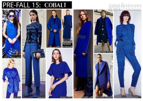 Vài mùa trở lại đây, xanh cobalt liên tục thống trị bảng màu thời trang. Dù tông màu không an toàn như xanh navy hay xanh thẫm nhưng nó khiến rất nhiều tín đồ mê mệt. Đây được coi là gam "quyền lực"trong lãnh địa thiết kế, có thể ứng dụng cho mọi mùa. Khi được thể hiện trên những chất liệu khác nhau, nó lại mang đến sắc thái riêng. Có thể tìm thấy sắc xanh cobalt trong bộ sưu tập giao mùa thu đông của Versace, Escada, Milly, Derek Lam...