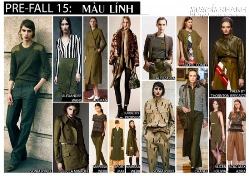 Màu lính vẫn xuất hiện lác đác trong các bộ sưu tập mùa trước song không mạnh mẽ, rõ rệt. Đến mùa này, nó được được ứng dụng rộng rãi. Cả những hãng đính đám như Burberry Prorsum, Alexander Wang và Chanel đều gửi gắm vào loạt thiết kế Pre-Fall. Màu lính đi kèm style quân đội khiến trang phục trở nên thời thượng, cá tính. Dù là quý cô công sở hay tín đồ thời trang đường phố cũng có thể lựa chọn những món đồ xanh rêu sành điệu, hợp mốt năm nay.
