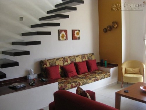 Một bộ sofa nhỏ nhắn phía dưới, thêm vài cái gối giúp bạn tha hồ nghỉ ngơi khi vừa đi xa về.