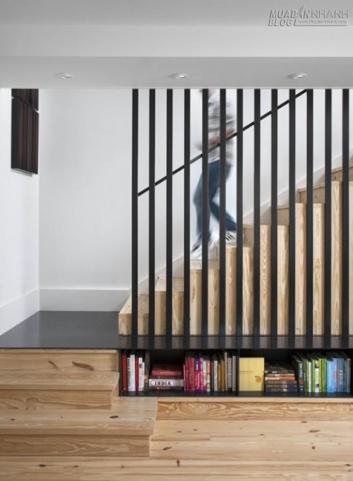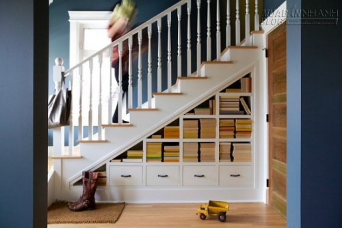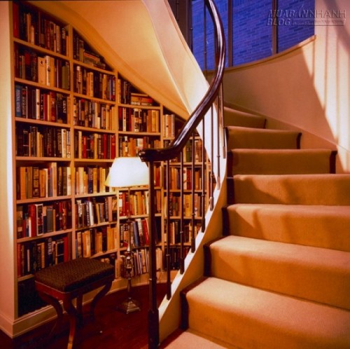 Một khe hở nhỏ dưới gầm cầu thang cũng có thể chứa được kha khá sách.