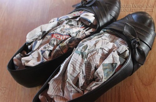 – Tận dụng giấy báo vụn vo lại vò nhét vào trong đôi giày của bạn. Giấy báo giúp hút ẩm hiệu quả và định hình cho đôi giày. Giày bạn không còn ẩm ướt, vi khuẩn sẽ không thể sinh sôi.