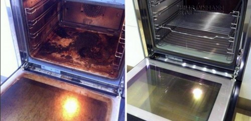 4. Làm sạch lò nướng đầy vết cháy và dầu mỡ