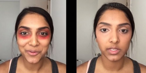 Khi bạn bị thâm đen bọng mắt sau một đêm mất ngủ, bên cạnh việc đánh một lớp kem che khuyết điểm dày cộp lên, hãy dùng son tô đỏ quanh bầu và bọng mắt, rồi dùng cọ chuyên dụng tán đều cho đến khi màu đỏ tan đi. Bạn sẽ có ngay một vùng mắt sáng, sắc thái hồng hào và tươi tỉnh hơn lên rất nhiều đấy!