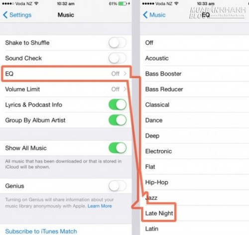 Bạn có thể tùy chỉnh chế độ nghe nhạc khác nhau để "hợp tai" hơn. Tùy chọn Settings - Music sau đó truy cập vào EQ, bạn có thể tùy chỉnh âm thanh mình nghe thấy với ứng dụng âm nhạc mặc định. Chắc chắn tùy chỉnh nhỏ này sẽ giúp khả năng nghe nhạc trên iPhone được cải thiện phần nào.