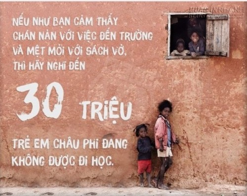 2. Sự thật là nếu bạn đang cảm thấy buồn chán với sách vở, thì hãy nghĩ đến 30 triệu trẻ em CHâu Phi không có cơ hội cắp sách đến trường