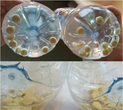 - Dùng thìa nghiền nát các viên vitamin B1 rồi đổ vào chai nhựa, ngâm cùng nước đến khi tan hết.