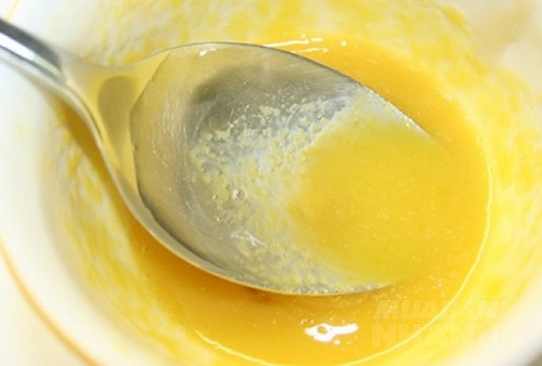 - Cho trứng gà vừa đánh hòa cùng nước vitamin B1, trộn đều với dầu olive hoặc dầu dừa đến khi thu được hỗn hợp có độ mịn thì đem sử dụng.