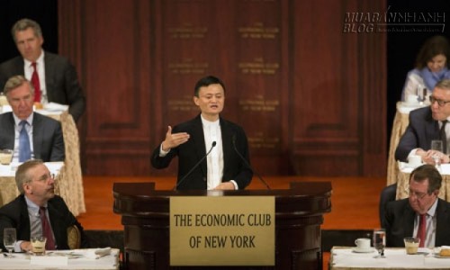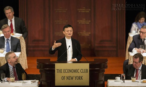 Jack Ma - Giám đốc điều hành Tập đoàn Thương mại Điện tử Alibaba phát biểu tại Câu lạc bộ Kinh tế New York ngày 9/6 |