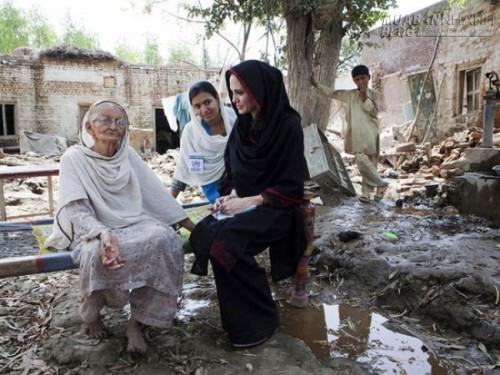 Cô đặt chân tới phía Bắc Pakistan kêu gọi thế giới cùng hướng về 21 triệu nạn nhân của trận lũ kinh hoàng quét qua đây hồi tháng 7/2010.