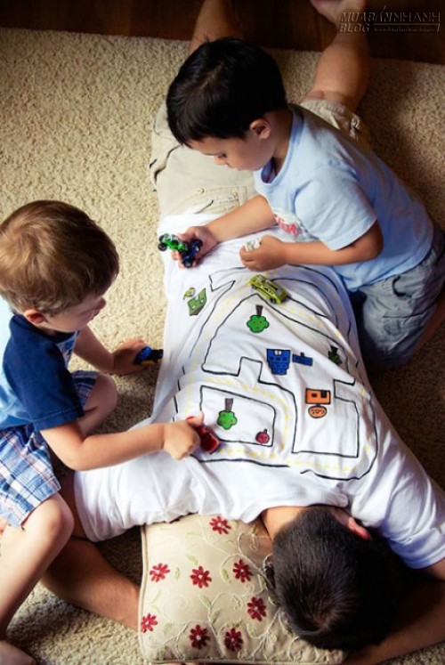 Bố làm nền cho các con chơi đùa.