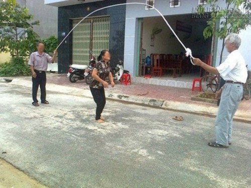 Không phải chỉ có chúng ta mới muốn được trở về tuổi thơ hay chỉ những bạn trẻ mới nhớ tới trò chơi thơ bé. Bức hình các bác cùng nhau chơi nhảy dây khiến cho dân mạng không khỏi xôn xao nhớ về những kỉ niệm ngày xưa.
