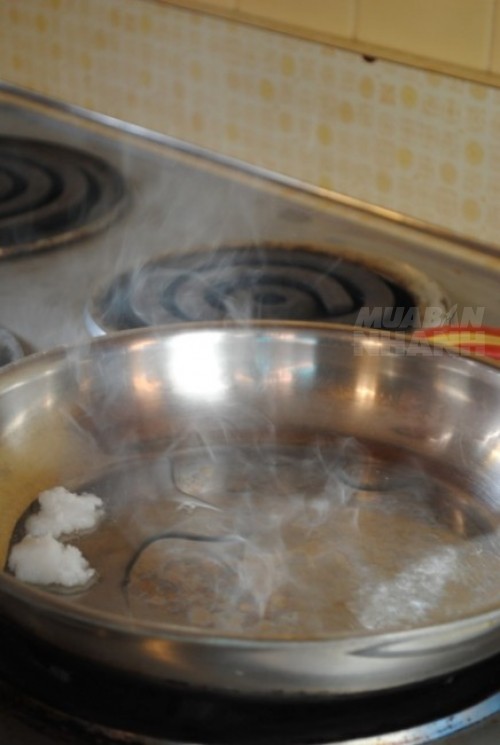Đầu tiên, hãy đặt chảo lên bếp, để chảo thật nóng ở lửa vừa.