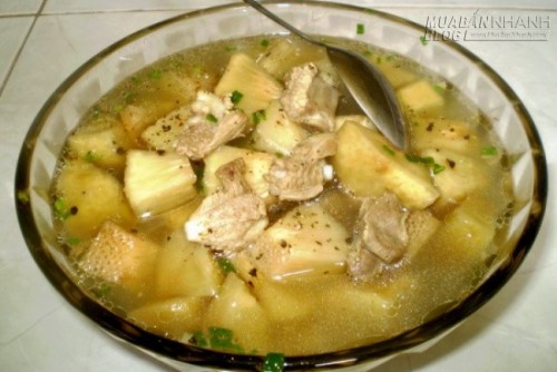 Ngoài ra, một số nơi bà con thường lấy quả sa kê hầm sườn non là món ăn vừa ngon miệng vừa có tác dụng giải nhiệt rất tốt. Nấu món này rất đơn giản, sườn non mua về rửa qua nước muối, sau đó rửa lại bằng nước sạch. Cho sườn non vào nồi nước đun sôi thì tắt bếp, đổ nước đó đi, cho nước sạch vào và tiếp tục đun sôi. Sa kê gọt vỏ, thái lát dầy, khi nước sôi thì cho vào nồi. Nêm lại các loại gia vị cho vừa ăn, đợi nước trong nồi sôi lại thì tắt bếp. thêm hành, mùi, gia vị và dùng nóng.