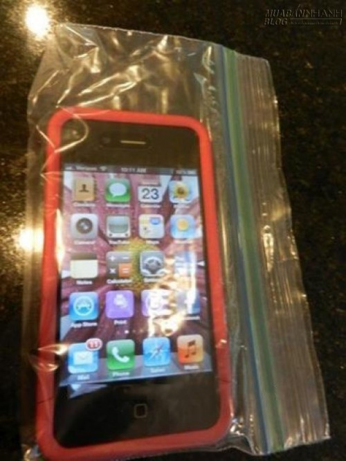10. Dùng một túi ziplock để bọc điện thoại. Cách này rất tiện khi bạn đi tắm biển đấy, có thể thoải