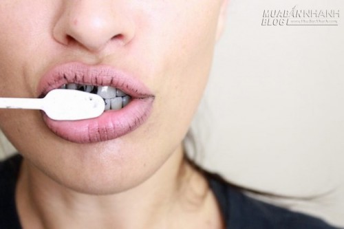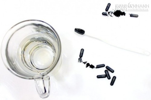 - Mở viên nang than ra và đổ một ít bột lên bàn chải đánh răng, sau đó chà nhẹ nhàng lên răng như chải răng bình thường trong vài phút.