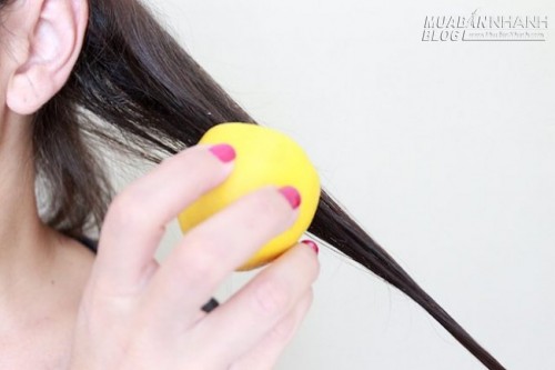 - Bạn chia tóc thành từng lọn (lọn nhỏ nếu muốn sóng xoăn mảnh và lọn dày nếu muốn sóng xoăn to), rồi dùng nửa quả chanh chà cho đến hết độ dài lọn tóc. Hãy chắc chắn là sợi tóc nào cũng đủ ẩm ướt từ nước cốt chanh này nhé.
