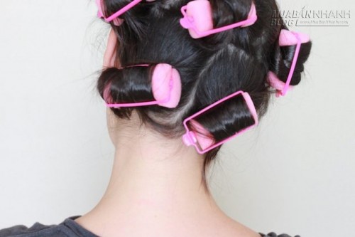 - Cuộn tóc vào lô đã chuẩn bị rồi kẹp cố định lại.