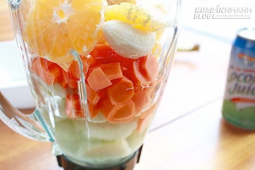 - Cắt chúng thành từng miếng nhỏ, cho tất cả vào máy xay sinh tố với nước, rồi xay cho đến khi được một hỗn hợp uống sánh đặc là được.