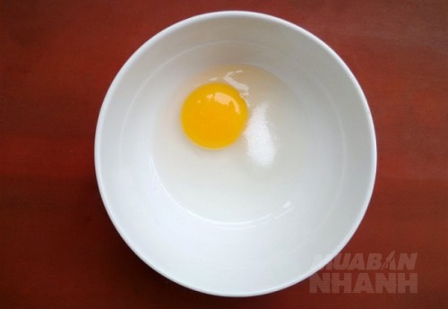 Bước 2: Đập trứng vào tô rồi thêm đường vào đánh tan.