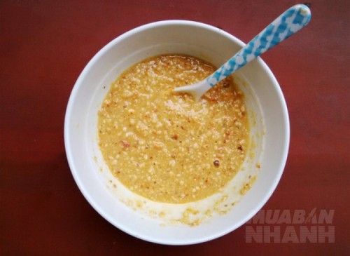 Bước 3: Cho đậu phộng đã xay vào tô trứng trộn đều.