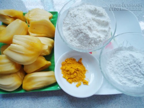 Bước 1: Mít bỏ hạt, cắt dọc múi thành 8 miếng (bạn có thể cắt hạt lựu để làm bánh hình tròn).