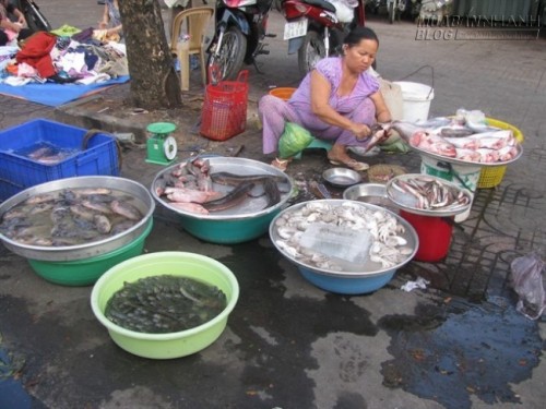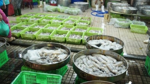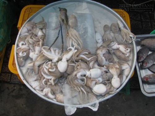 Chợ xóm chiếu bán cũng rất đầy đủ có mực, bạch tuột, cá, tôm, sò, ốc.