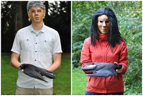 Trong một nghiên cứu trước kia về quạ của tiến sĩ John Marzluff thuộc ĐH Washington, các khoa học gia sử dụng mặt nạ trong quá trình đặt bẫy tại 5 địa điểm khác nhau.