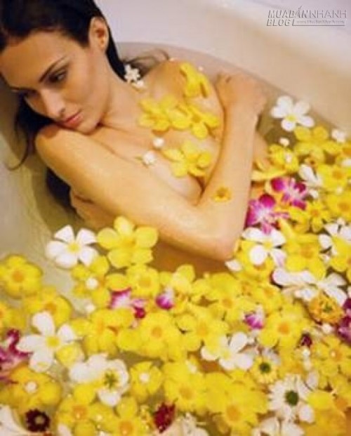 Bài 2: Lấy 10 bông cúc nhỏ, 2 bát cánh hoa hồng vò nát, nước cốt của một quả chanh, nửa bát cánh hoa nhài. Vò nát tất cả các cánh hoa vào tắm với nước ấm. Khi tắm thả lỏng cơ thể và tắm, thực hiện 3 lần/tuần bạn sẽ có làn da mềm mại, mượt mà và trẻ trung.