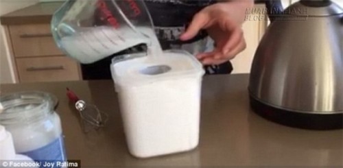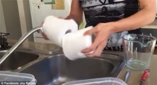 Chị Joy Ratima, sống tại Melbourne, Úc đã tự làm khăn ướt cho bé từ những nguyên liệu có sẵn chỉ trong chưa đầy 5 phút. Tất cả những nguyên liệu cần thiết để làm giấy ướt là giấy vệ sinh, dầu dừa, sữa tắm cho bé, và 2 chiếc hộp nhựa để đựng giấy.