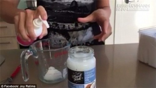 Bước 3: Trộn đều hỗn hợp dầu dừa, sữa tắm và nước...