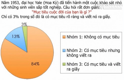 Năm 1953 , đại học yale (hoa kỳ) đã tiến hành một cuộc khảo sát nhỏ với những sinh viên xắp tốt nghiệp, câu hỏi rất đơn giản, mục tiêu cuộc đời của bạn là gì ? chỉ có 3% trong số đó là có mục tiêu rõ ràng và viết nó ra giấy.