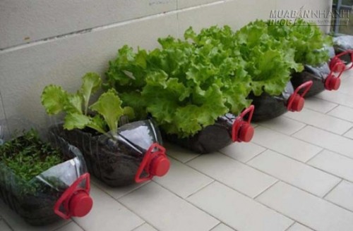 3. Chỉ cần vài chai nhựa to như thế này là bạn đã có hẳn vườn rau xanh mướt tại gia rồi!