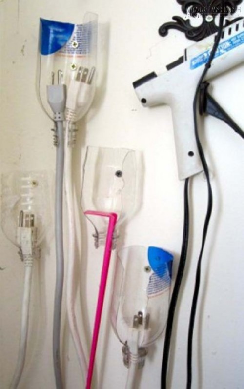 8. Bạn cũng có thể tận dụng chai nhựa để nhà cửa gọn gàng hơn, các loại dây điện được sắp xếp, bố trí ngăn nắp.