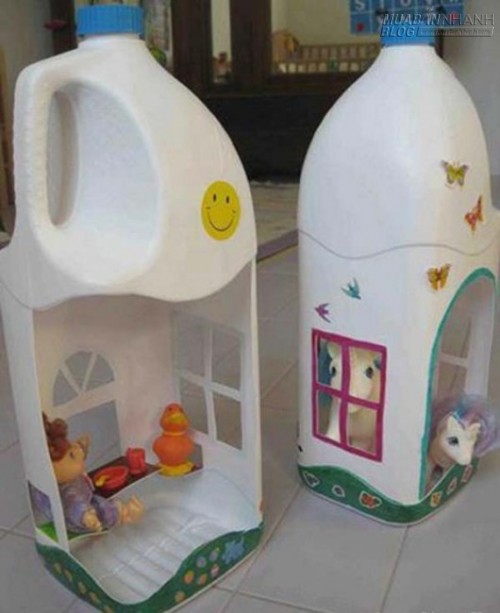 20. Thậm chí có thể tạo thành một ngôi nhà đồ chơi cho bé từ chai nhựa.